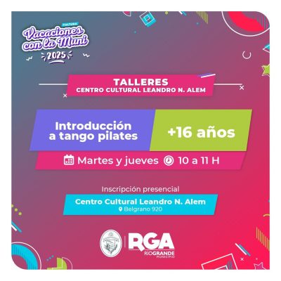 En esta oportunidad, el taller “Introducción a Tango Pilates” se suma al abanico de propuestas que brinda el Centro Cultural Alem, en el marco de esta temporada de verano. Las inscripciones para participar del mismo se están realizando de manera presencial, de lunes a viernes de 09 a 19 horas, en el Centro Cultural Alem (Av. Belgrano 920).