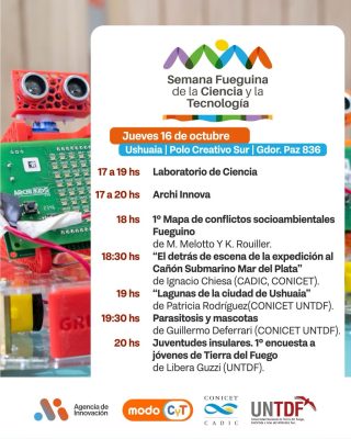 Esta segunda edición, organizada entre el CADIC- CONICET, la Secretaría de Ciencia y Tecnología y la UNTDF, propone actividades para toda la comunidad, con una programación simultánea en distintos puntos de la provincia, que incluirán ferias interactivas, charlas abiertas, talleres, visitas guiadas, experiencias de laboratorio abierto, proyecciones audiovisuales y contenidos digitales, priorizando la articulación con escuelas, universidades, centros de investigación y organizaciones sociales.