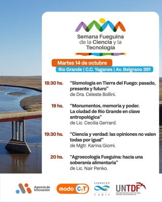 A su vez, Mauro Gómez Samus, secretario de Investigación y Gestión del Conocimiento de la UNTDF, mencionó que “Tierra del Fuego genera conocimiento situado, clave para nuestro desarrollo y valioso para todo el país. La Semana Fueguina de la Ciencia y la Tecnología es una oportunidad para que la comunidad se sume a esta construcción común y conozca los resultados del trabajo de investigadores y docentes que, aun en este duro contexto, sostienen día a día la producción de saberes para la provincia y la patria”.